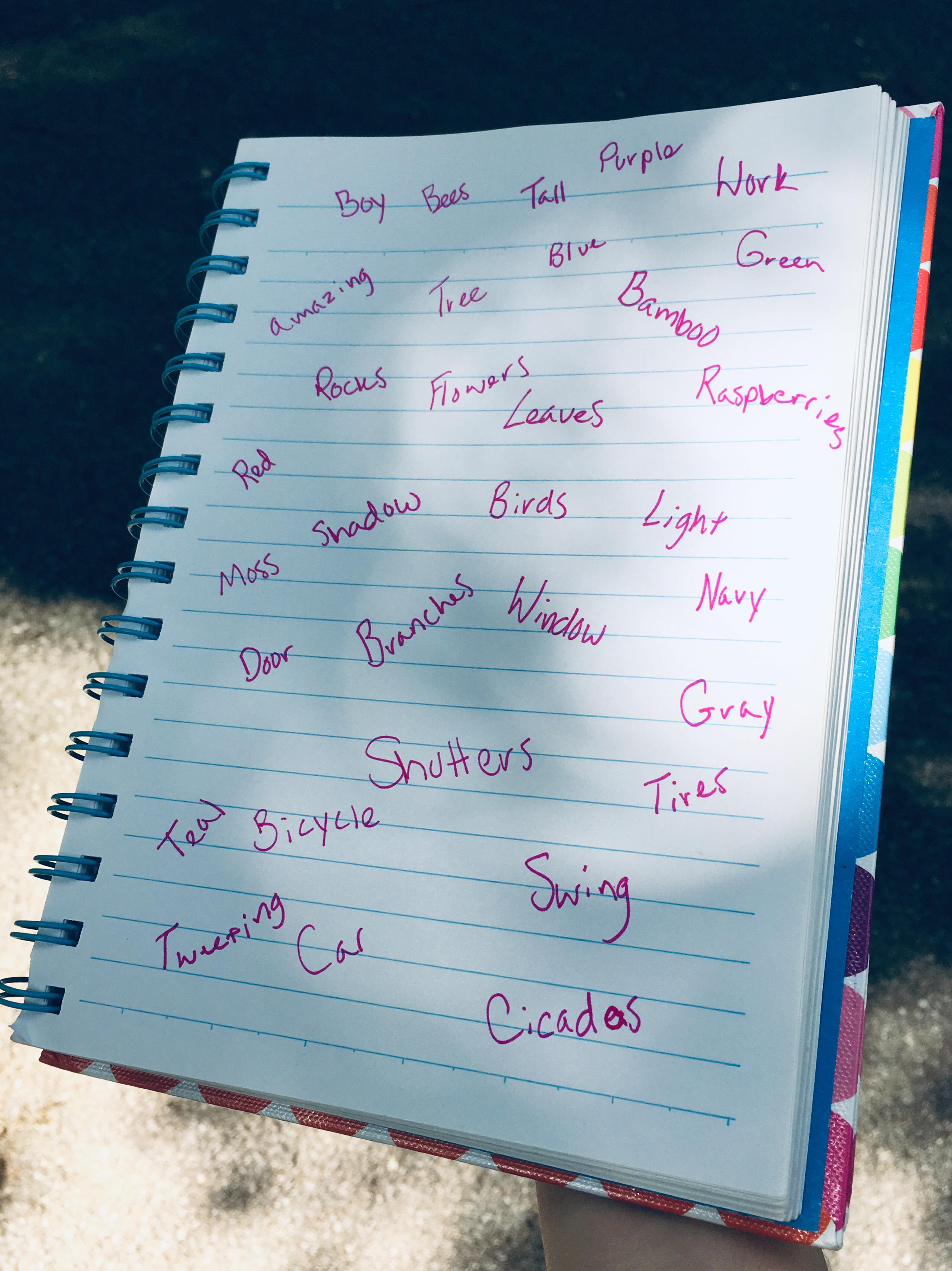 - Get out a piece of paper and just write. Write anything. Describe what you see around you. Explain how you’re feeling. Or, you could just write simple words. Apple. Water. Blanket.