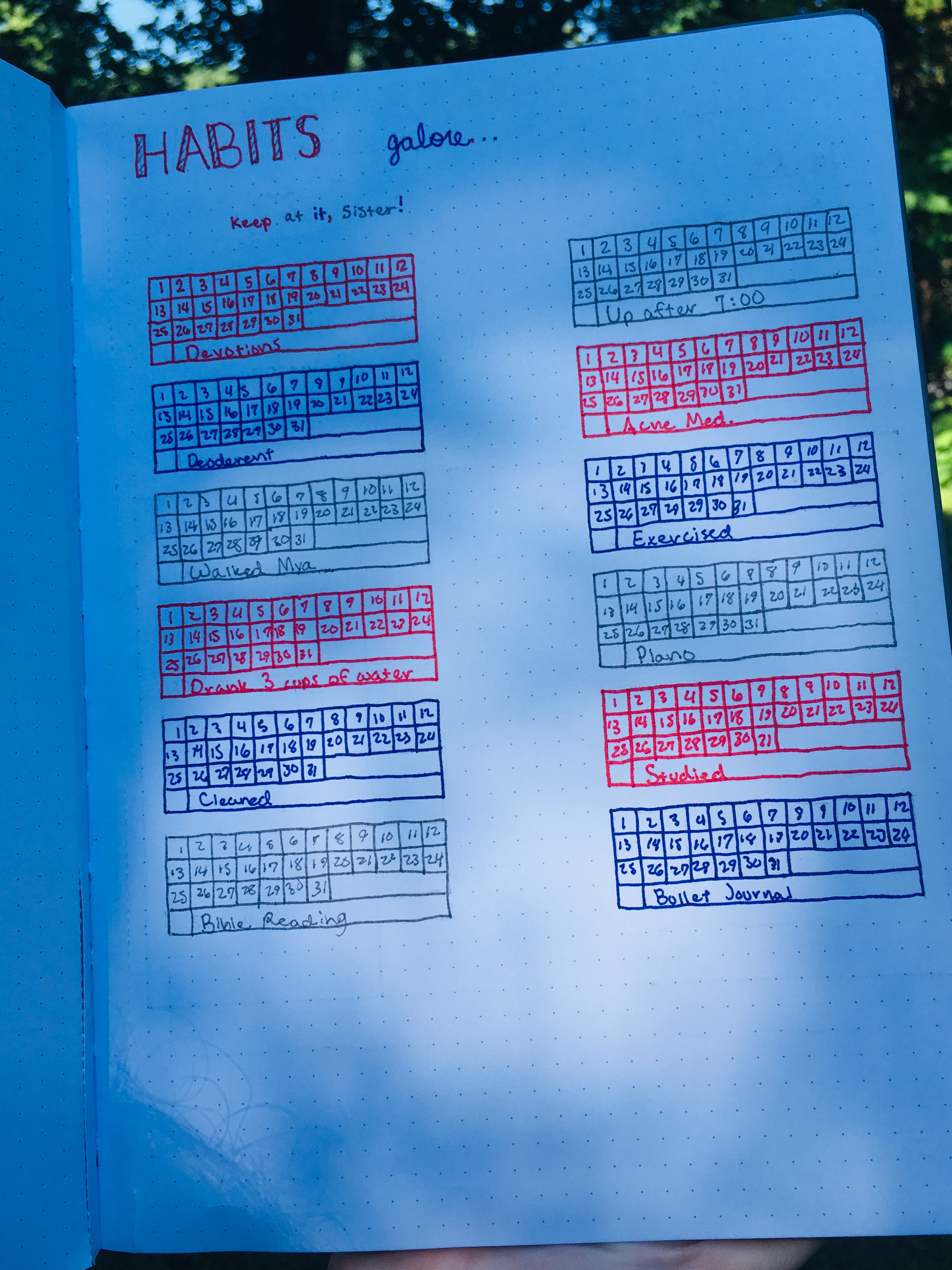 Yay! This was the area I excelled in! I got a lot done in my bullet journal this month, and I am really excited to show you the pictures of next month! I worked very hard on them, and I think I did really well!