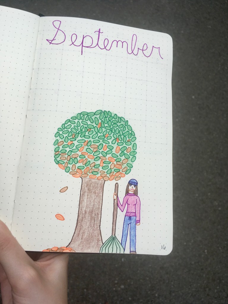 I decided to do a title page for September. If you can’t tell, I am DEFINITELY excited for fall. This tree is just starting to drop leaves, and I’m hoping that’s what’s actually going to happen this month. I really love the atmosphere of fall.