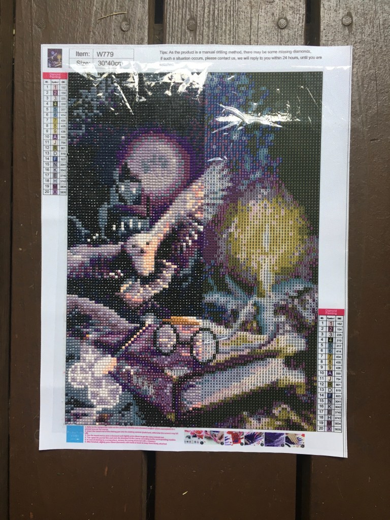 I didn’t do very much art during August, but I did work on my diamond painting a little bit.